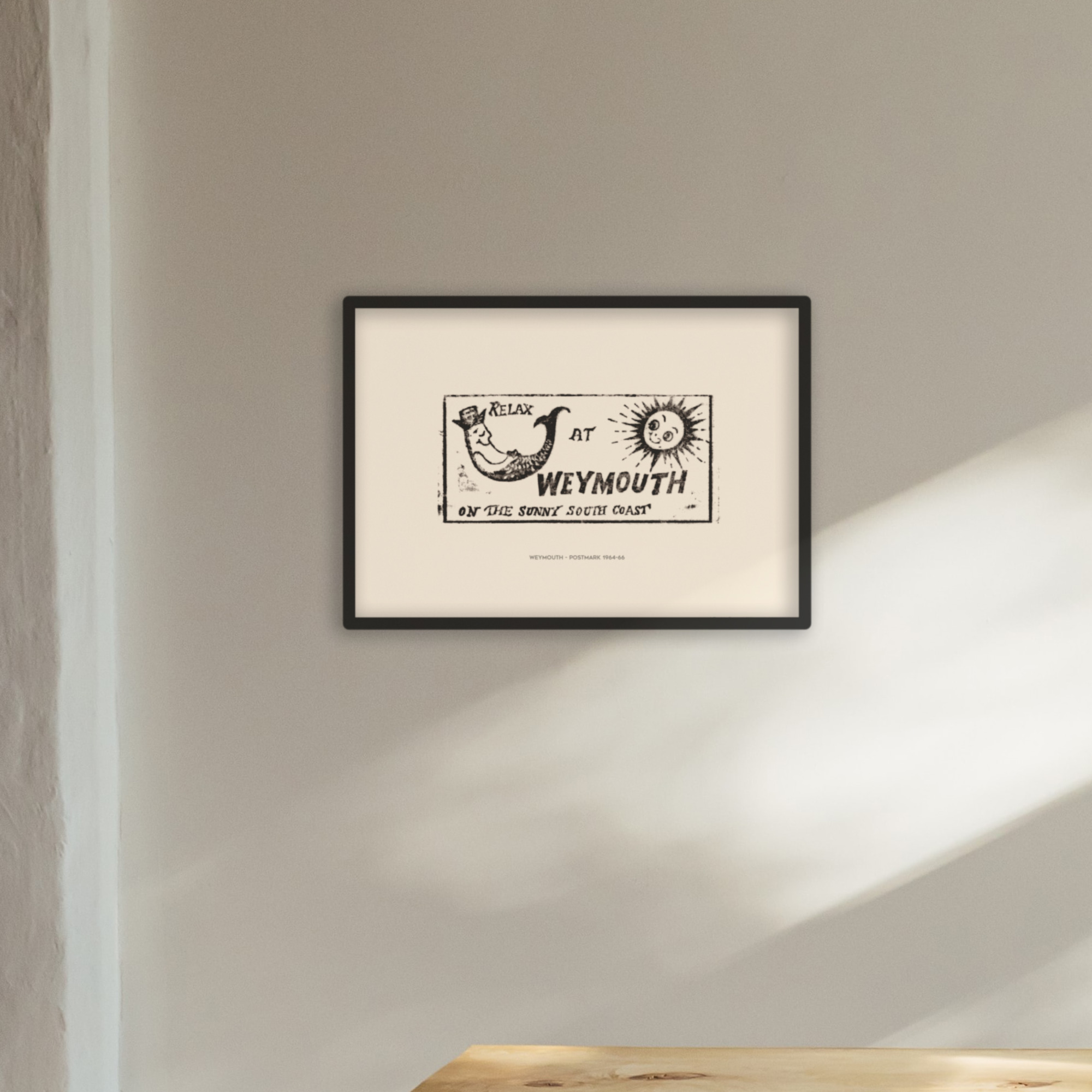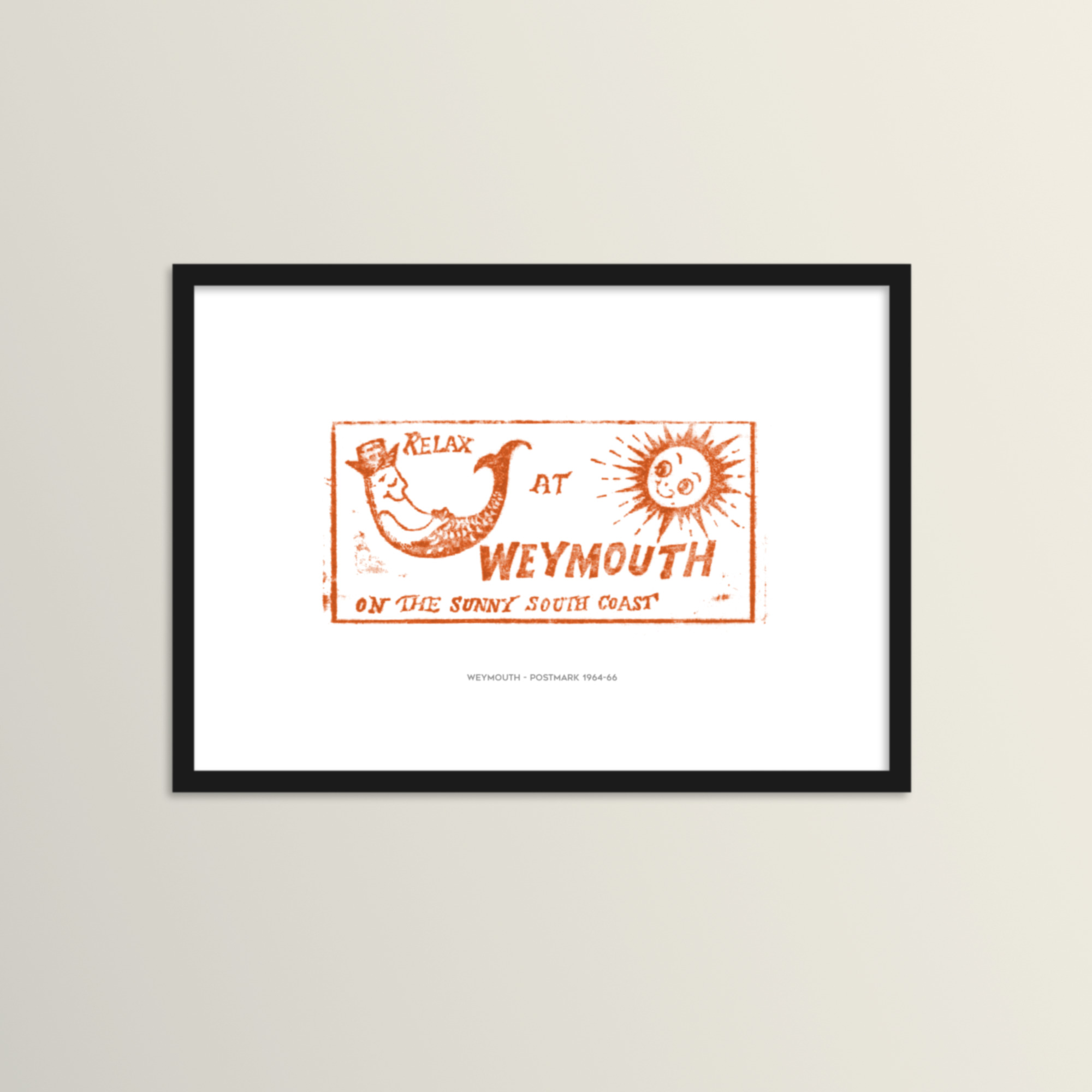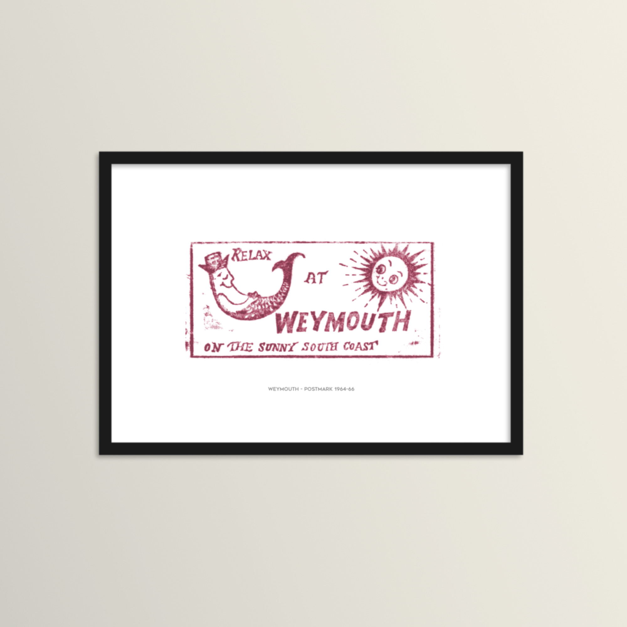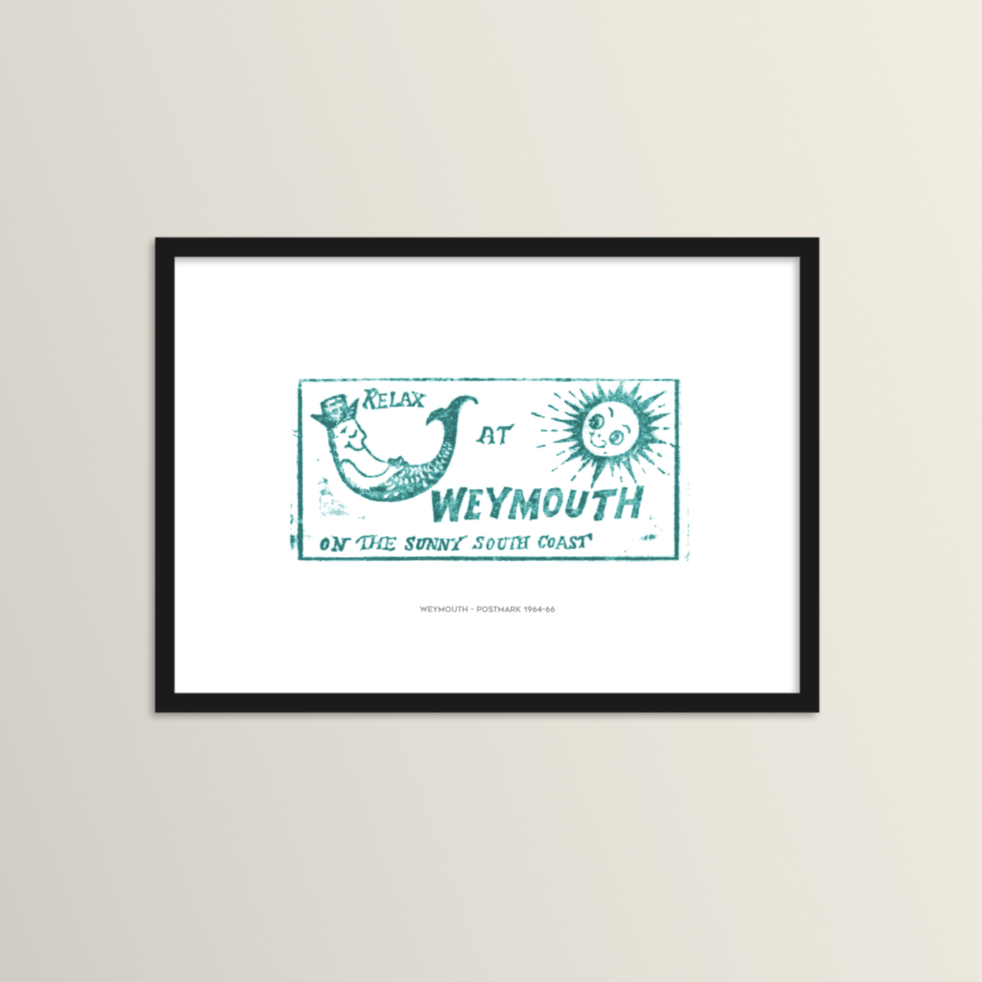 Title text: The print can come with or without the title text: Weymouth – postmark 1964-66.