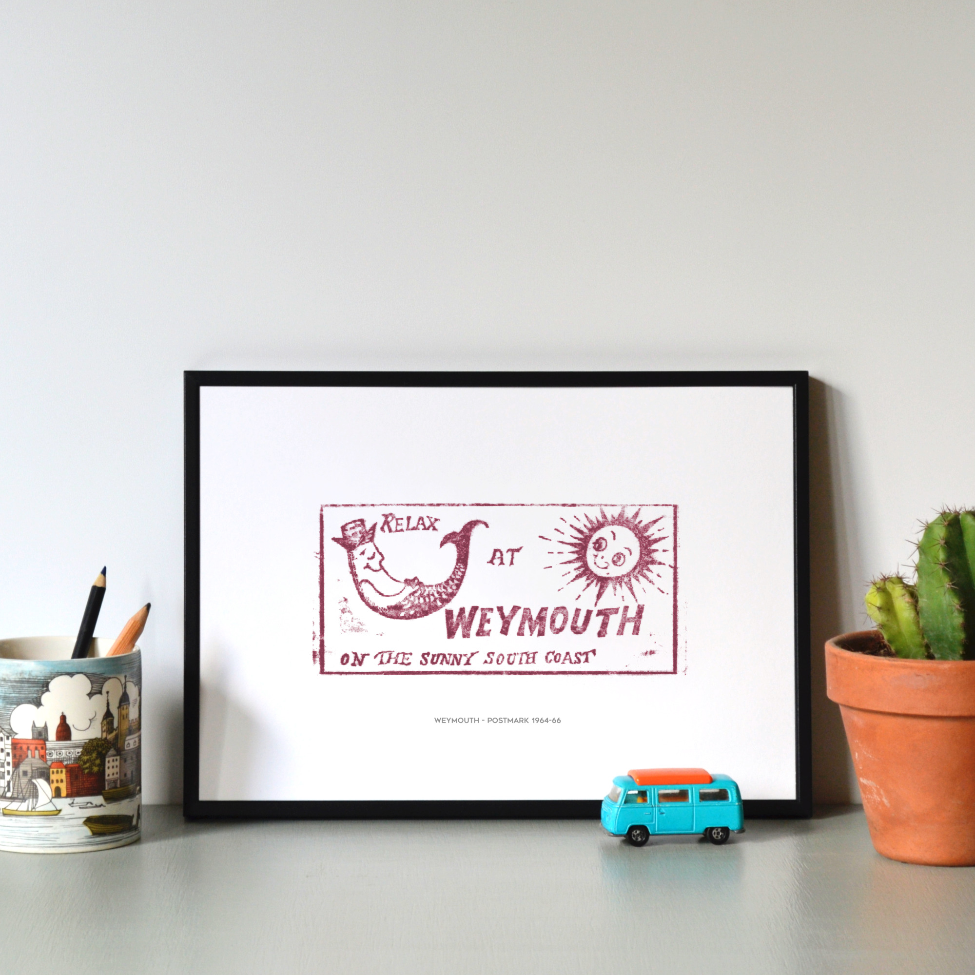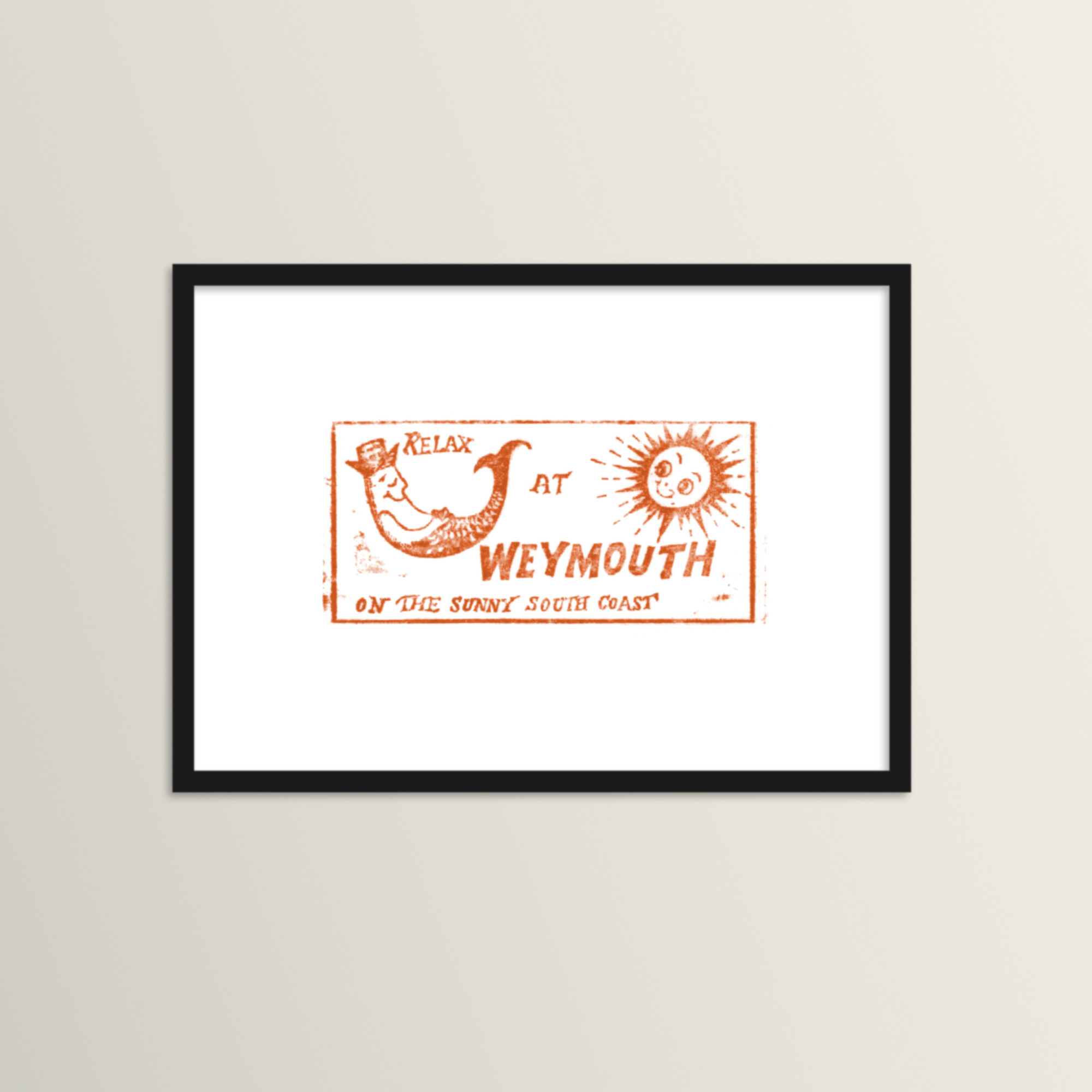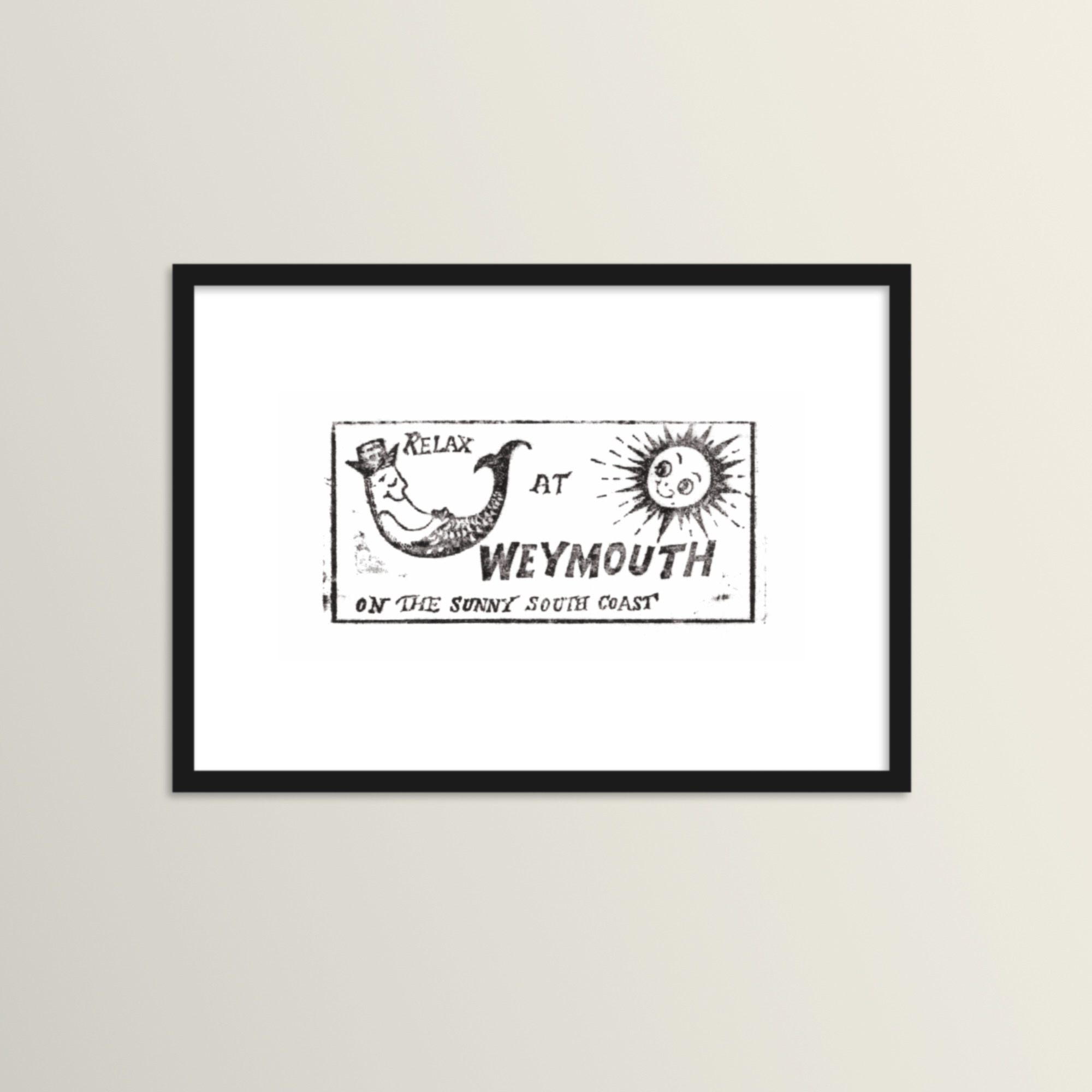 The original miniature work in ink brightened up doormats and breakfast tables in the UK & beyond during the mid-sixties, with a cheeky little fish character resting in the sun, inviting you to ‘Relax at Weymouth on the Sunny South Coast’.
